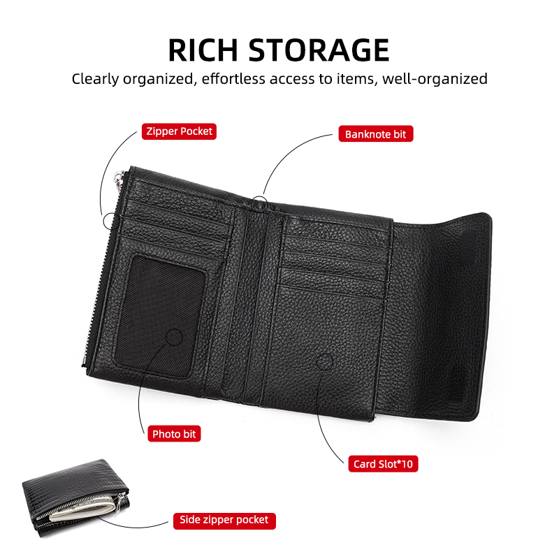 - Slim & Functional: The trifold design keeps the wallet compact and easy to carry in your pocket or bag, while the secure closure keeps all your items safely stored.