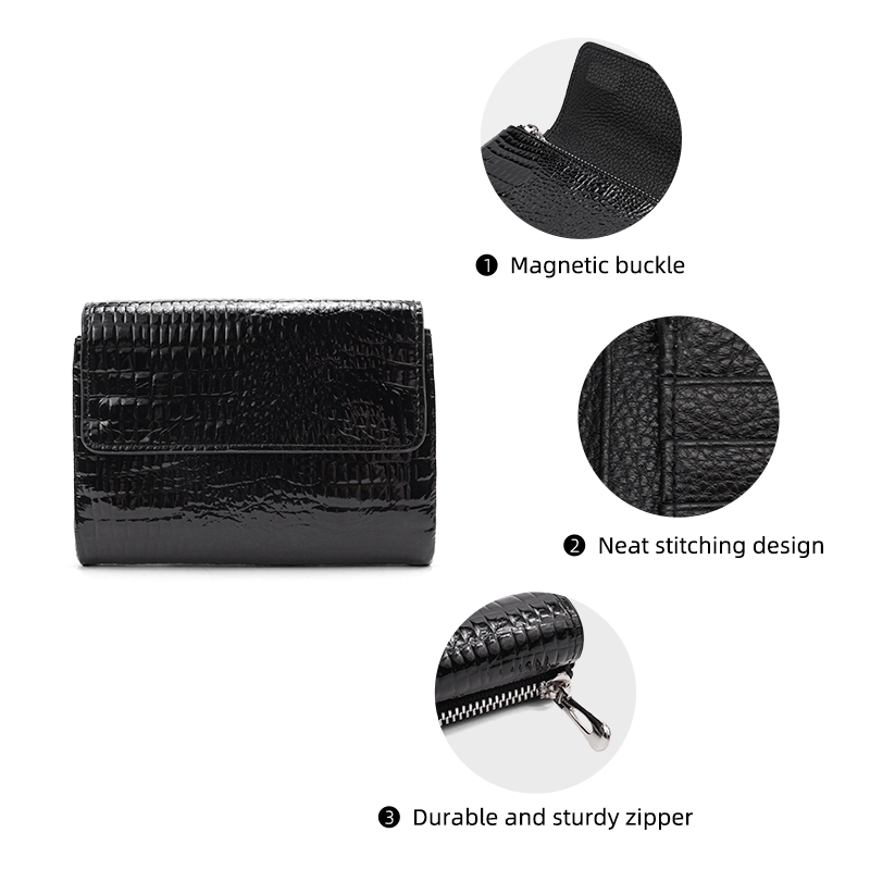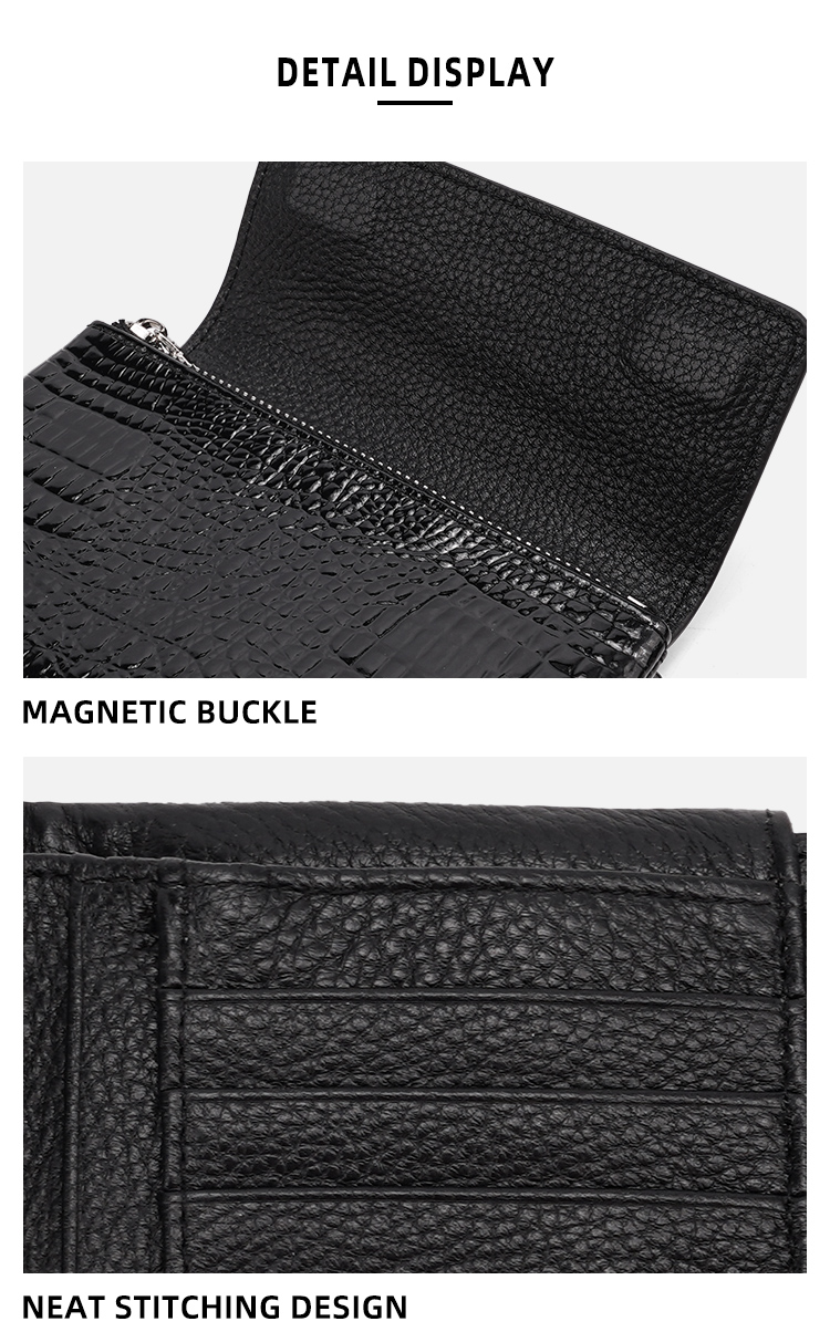 - Premium Material: Crafted from high-quality leather with a glossy crocodile-embossed finish, it offers a luxurious look and durable, long-lasting performance. The soft, textured interior ensures your belongings stay protected.