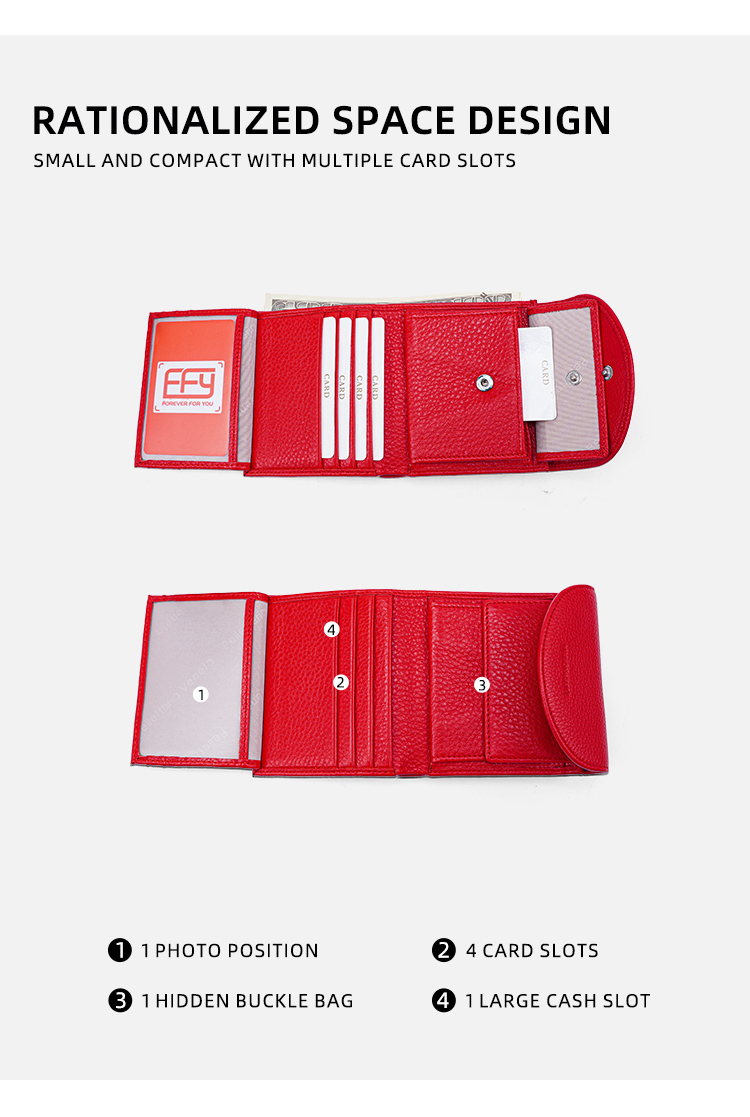 Crafted from premium pebbled genuine leather, this compact wallet from the FOREVER FOR YOU brand blends minimalist design with thoughtful functionality. Its curved snap closure and sleek profile offer a modern take on everyday essentials, with three versatile color options to suit any personal style.