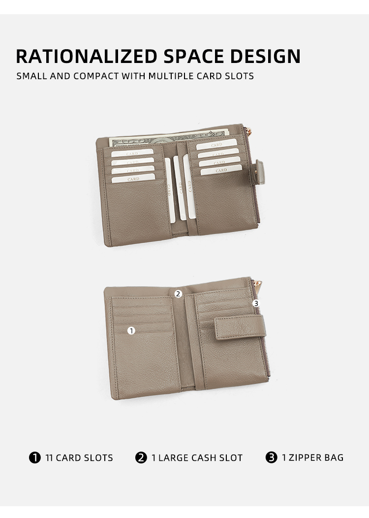 - 11 card slots: Securely holds credit cards, IDs, and business cards in dedicated slots.