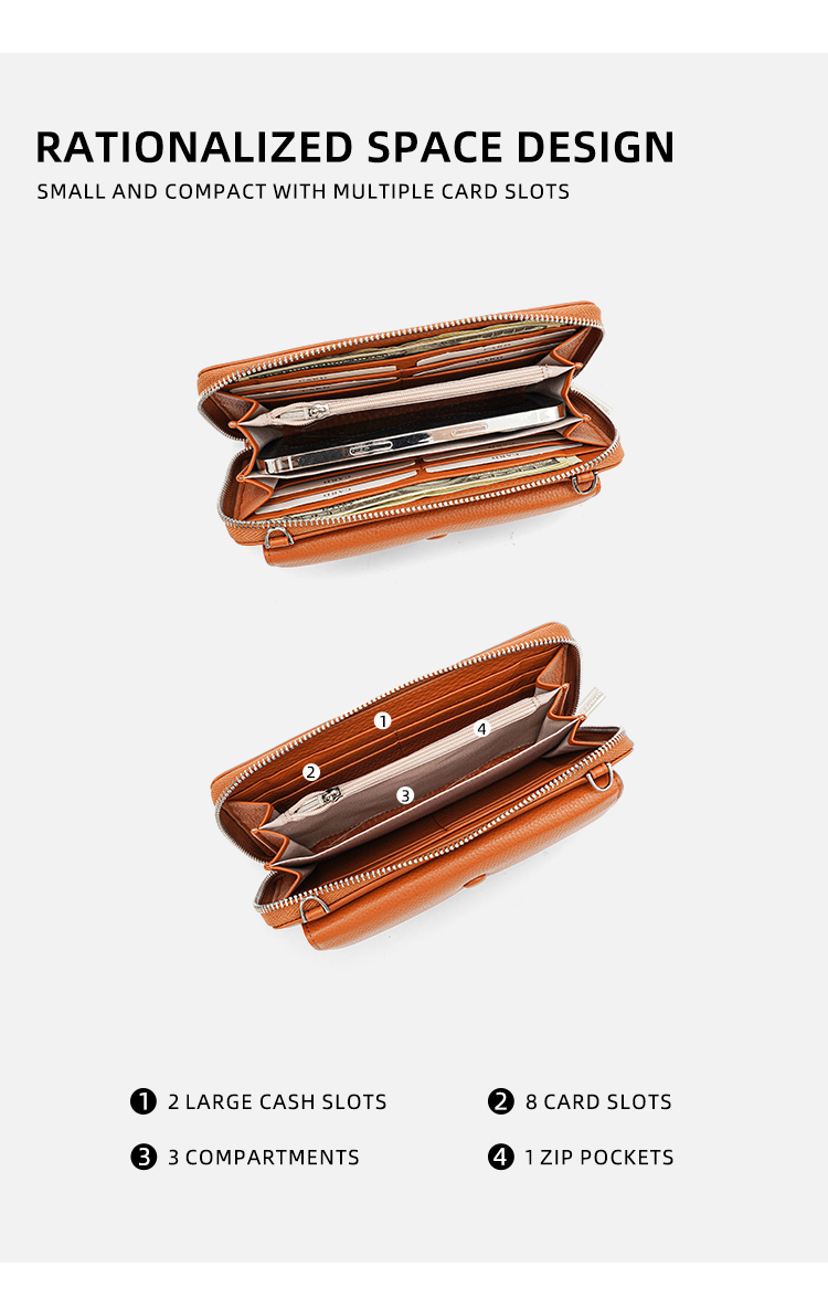 - 2-in-1 Functionality: Can be used as a long wallet or worn as a crossbody bag with the included adjustable strap, ideal for travel, shopping, or casual outings.
