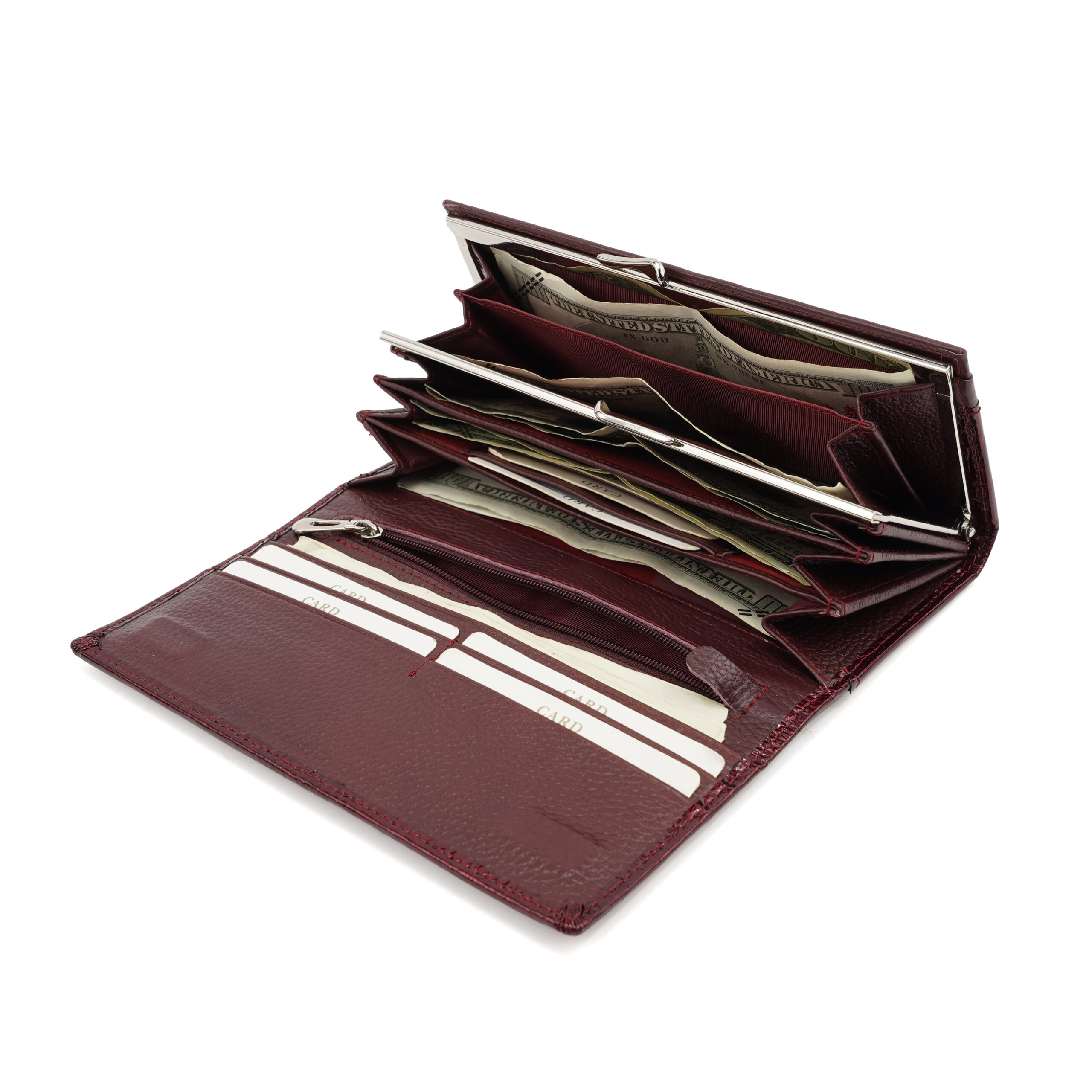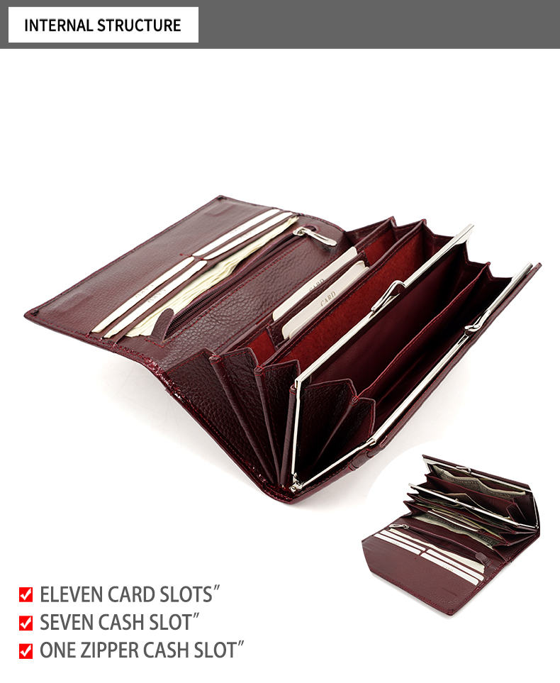 - Ample Storage: Multiple card slots, zippered coin pocket, and cash compartment