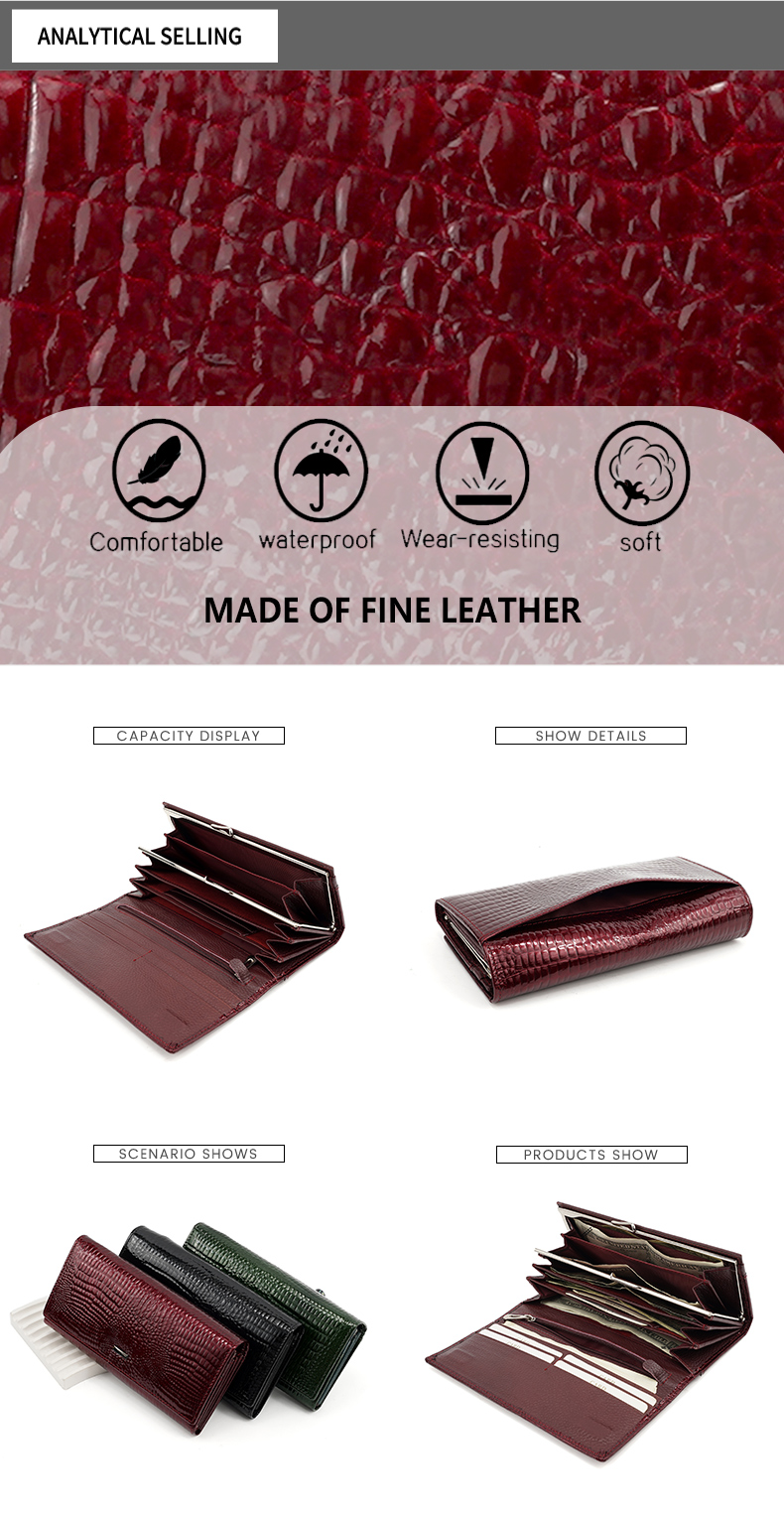 Glossy Embossed Fine Leather Long Wallet | Waterproof & Wear-Resistant