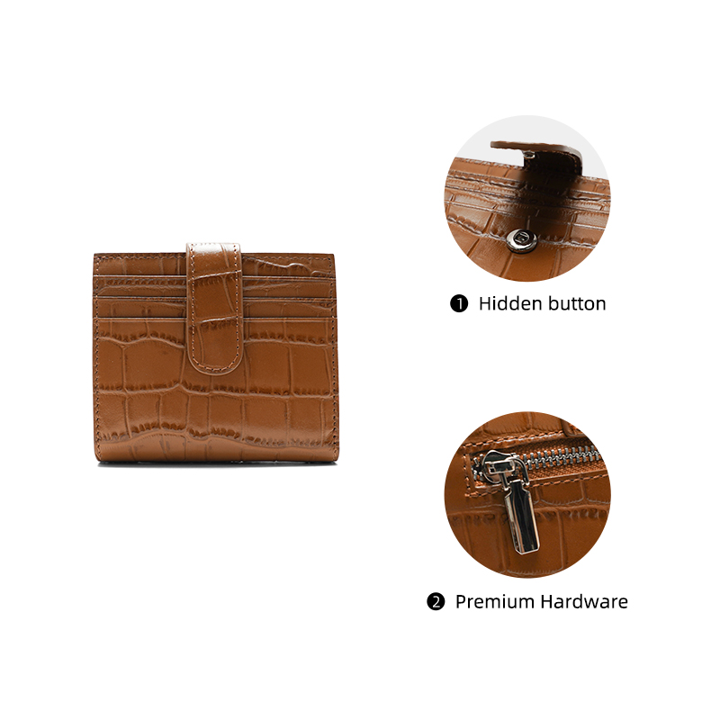 This stylish and compact wallet is crafted from premium genuine leather, featuring a sophisticated crocodile-patterned texture that blends durability with a luxurious aesthetic. Designed for the modern minimalist, it offers a practical way to carry your daily essentials without bulk.