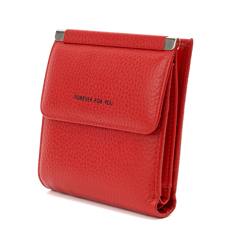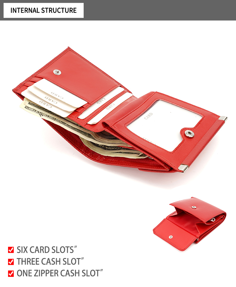 Crafted from supple, pebbled genuine leather, this compact wallet is designed for the modern, organized individual. With a polished metal corner trim and secure snap closure, it combines timeless elegance with practical functionality, available in 5 versatile color options to suit any style.