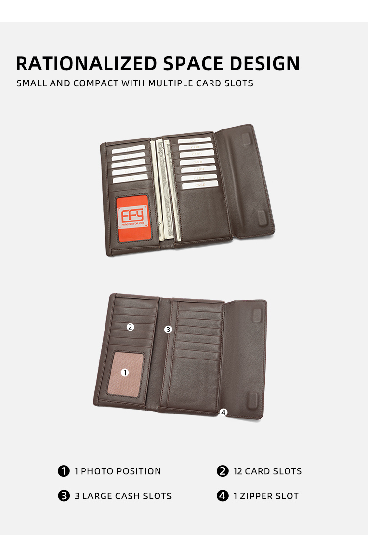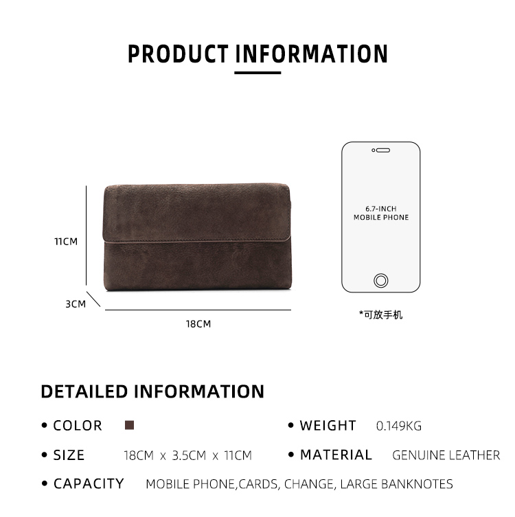 - Secure & Streamlined Design: Tri-fold structure with a magnetic snap closure keeps all contents safely contained, while the elongated silhouette maintains a sleek, portable feel.