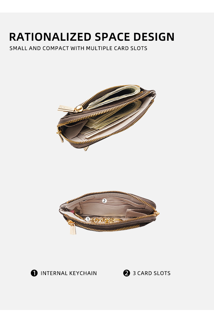 - Main zippered compartment for cash, coins, lip balm, or other small essentials